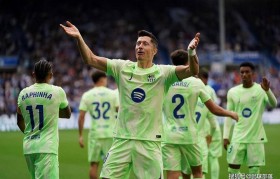 本赛季西甲第9轮一场比赛,巴萨客场3-0大胜阿拉维斯,积分达...