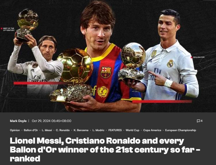 进球网评本世纪金球含金量:梅西包前4,C罗2013垫底梅西2010倒7