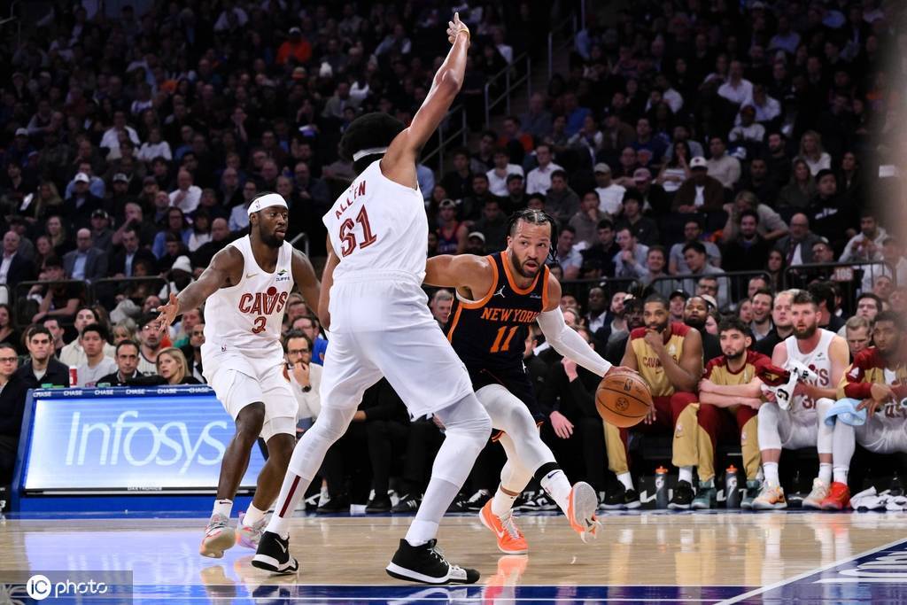 尼克斯队首发:杰伦-布伦森、米卡尔-布里奇斯、约什-哈特、OG-阿奴诺比、卡尔-安东尼-唐斯