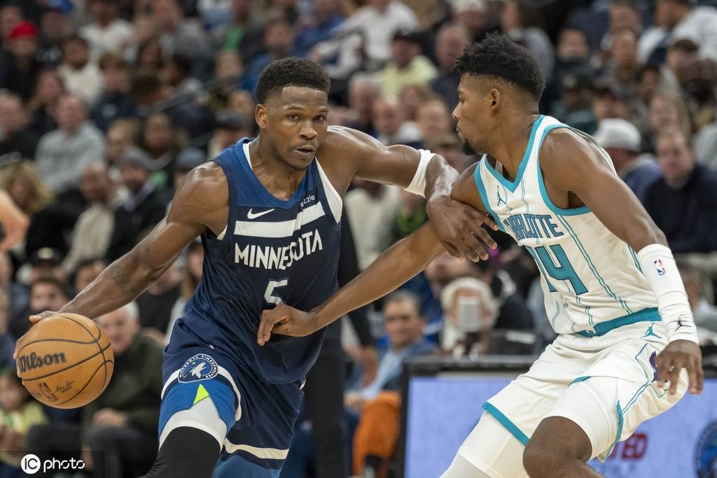森林狼队首发:安东尼-爱德华兹、朱利叶斯-兰德尔、迈克-康利、贾登-麦克丹尼尔斯、鲁迪-戈贝尔