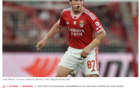 葡媒A BOLA报道,大巴黎加入了竞争本菲卡中场若昂·内维斯的行列,并且将报价从6000万欧提升到了...